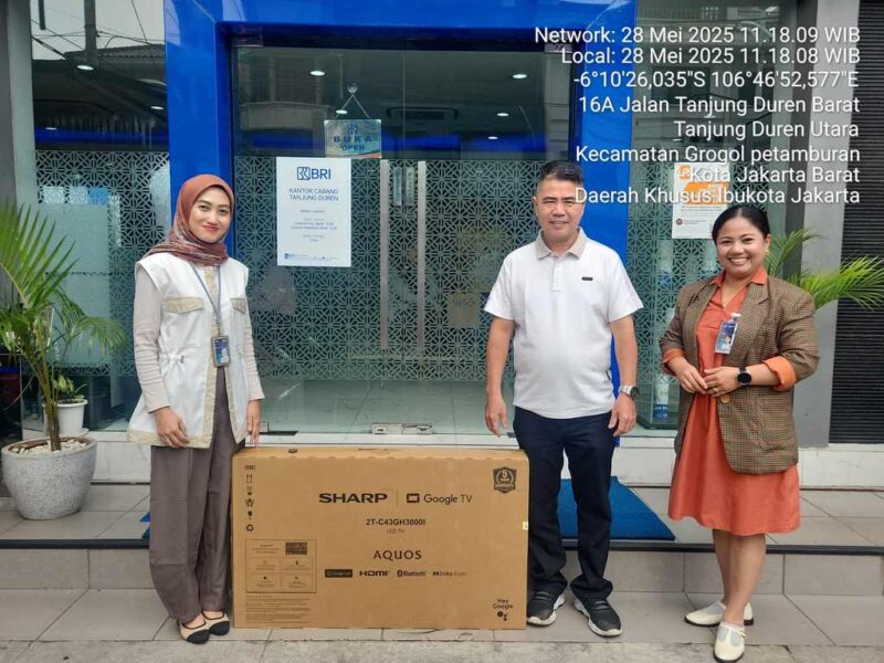 Jakarta| PT Bank Rakyat Indonesia (Persero) Tbk atau BRI melalui Kantor Cabang Jakarta Tanjung Duren menyerahkan hadiah kepada nasabah pemenang Undian Simpedes Periode September 2024 – Februari 2025 sebagai bentuk apresiasi atas loyalitas mereka terhadap produk tabungan Simpedes.