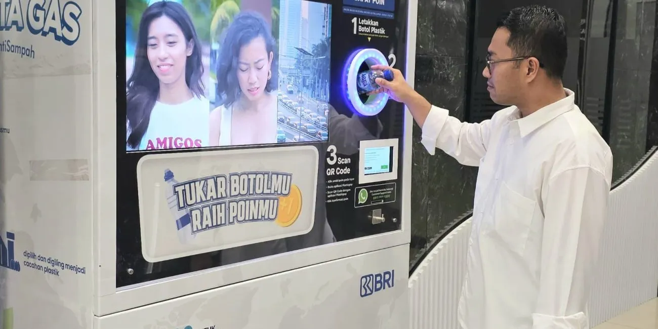 Mesin tersebut dihadirkan atas kerja sama antara BRI dan PlasticPay, sebuah platform daur ulang berbasis digital.
