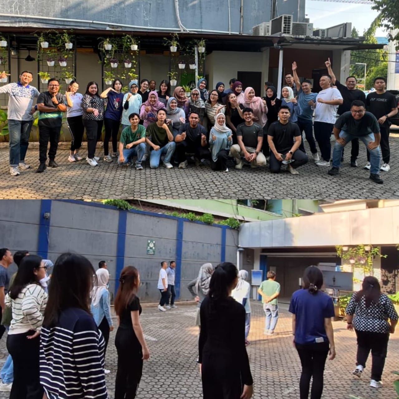 Pada hari Jumat, 11 Oktober 2025, seluruh pegawai BO Kebon Jeruk dari berbagai unit kerja berkumpul di area parkir belakang kantor untuk mengikuti kegiatan Senam Pagi Bersama.
